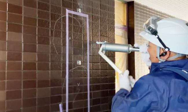 → KFのタイル剥落防止塗料「スーパーオチナイト」でタイルをラッピングし、安全性を確保。