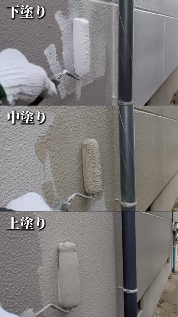 外壁の下地を整えるためにフィラーで下塗りを施し、『KF無機塗料』で仕上げました。