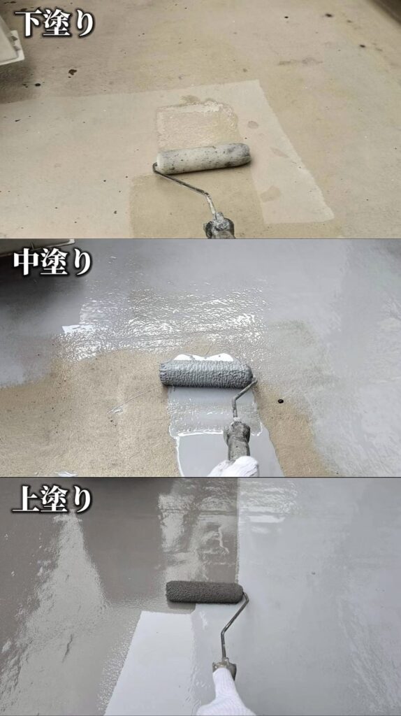 ウレタン防水は、液体所のウレタン樹脂を配布し硬化させて防水層を形成する工法です。硬化後はゴム状の継ぎ目のない塗膜になります。柔軟性の高い防水塗装工法です。