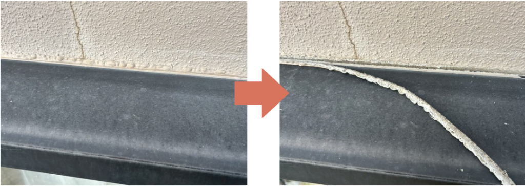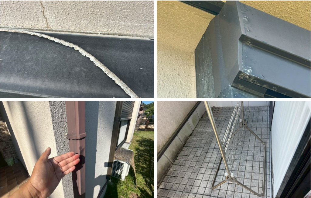 | コーキングの経年劣化 | 亀裂や断裂 | 目地から雨水が入り込み、防水シートや木部を痛める可能性. | コーキング |