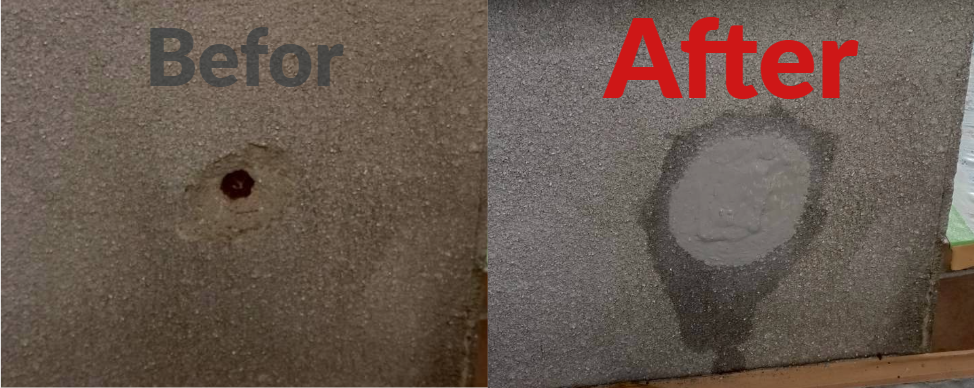 外壁の下地を整えるためにフィラーで下塗りを施し、『KF無機塗料』で仕上げました