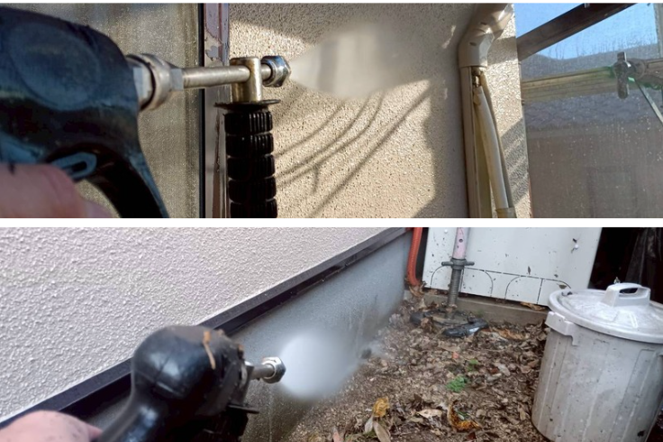 外壁のチョーキングが見られたため、高圧洗浄でしっかりと汚れや劣化塗膜をしっかり除去